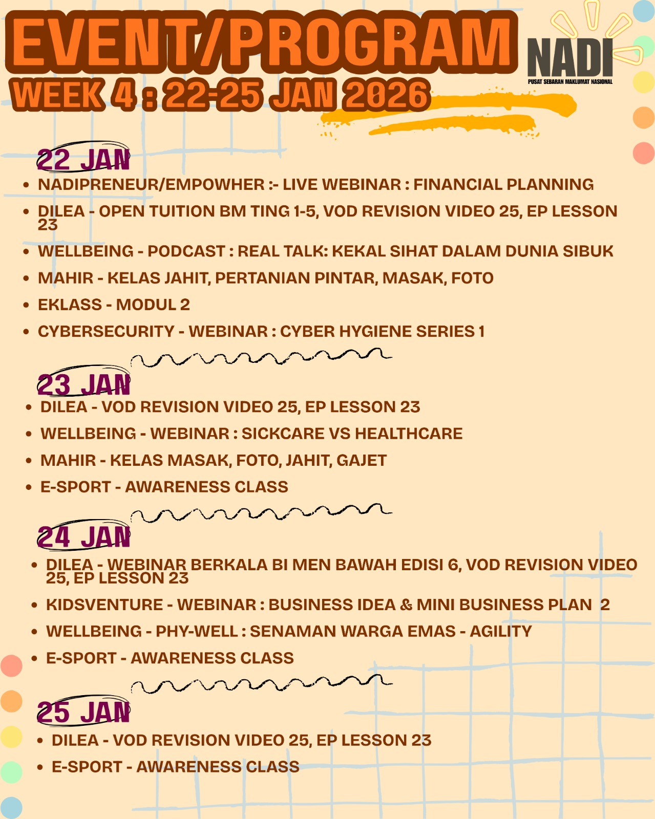 MAK AYAH & USAHAWAN TENGAH PENING CARI AKTIVITI BERFAEDAH? TENGOK JADUAL NI, SETTLE MASALAH! . Jangan biarkan minggu ke-4 Januari ni berlalu kosong macam tu je.. . Program Perkhidmatan Pintar NADI minggu ni memang fokus untuk upgrade diri kita. Tengok […]
