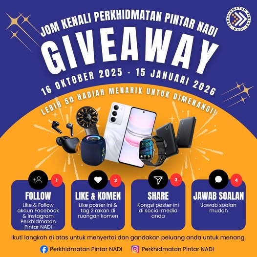 Soalan mudah di sini –> https://bit.ly/KuizGiveawayPerkhidmatanPintarNADI![]()