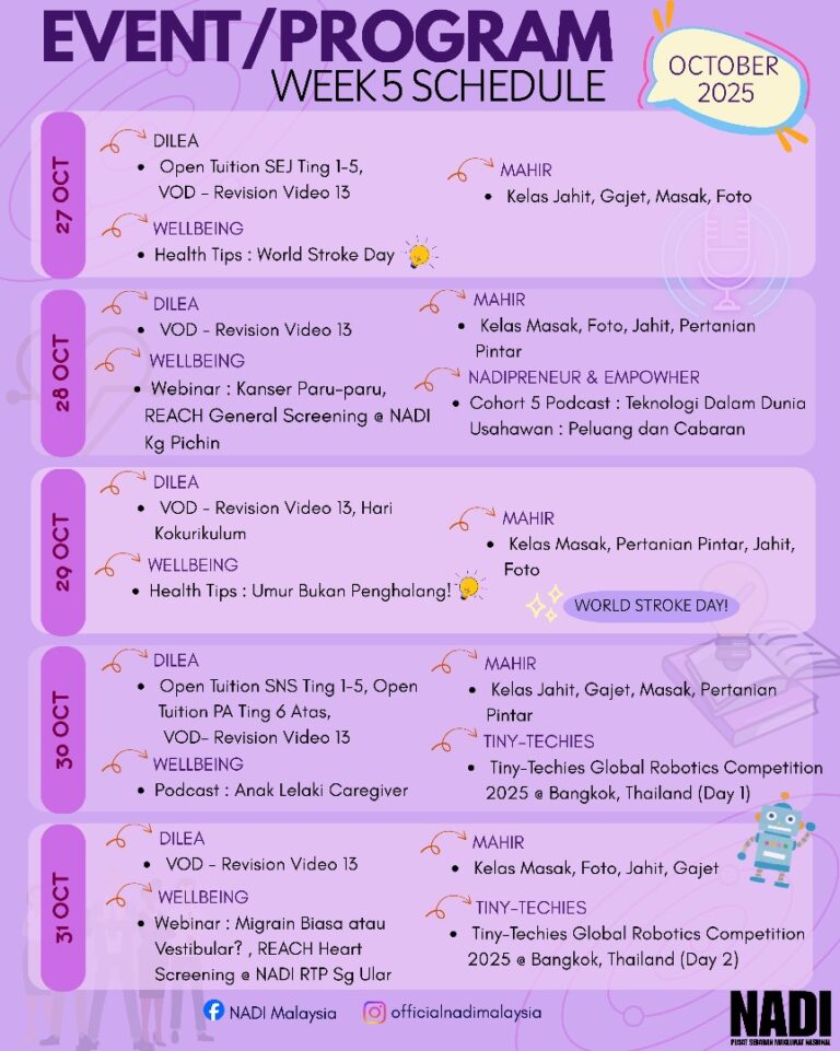 Minggu terakhir Oktober 2025 penuh dengan aktiviti menarik di bawah Perkhidmatan Pintar NADI! ![]()