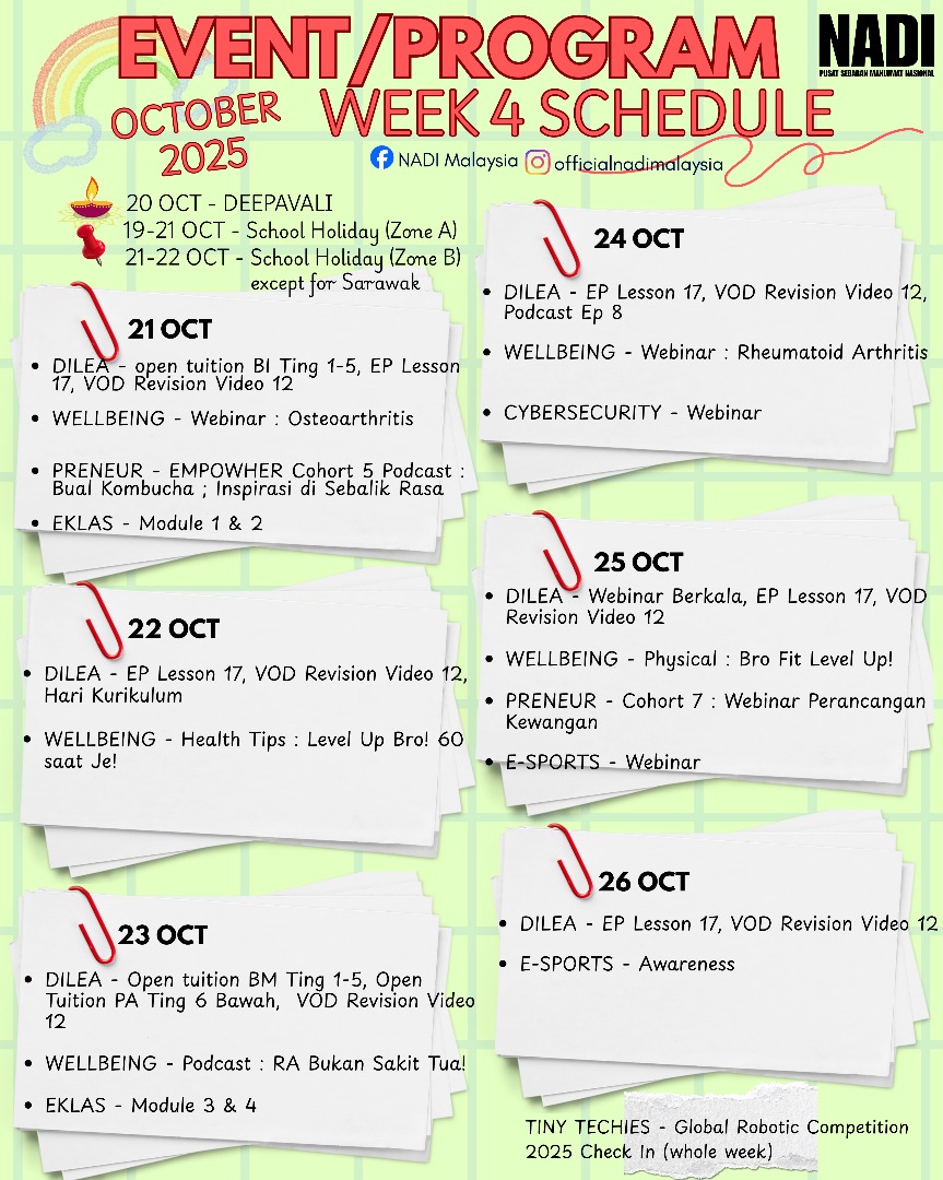 JADUAL PROGRAM NADI MINGGU KEEMPAT BULAN OKTOBER