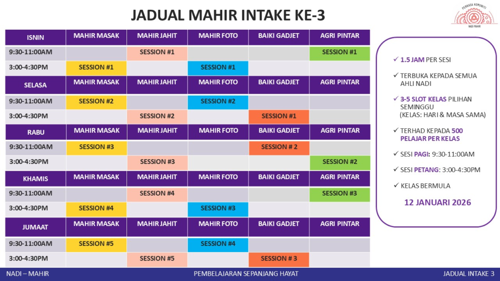 📣 KELAS INTAKE 3 NADI MAHIR AKAN BERMULA 12 JANUARI 2026. JANGAN LEPASKAN PELUANG 🥳
