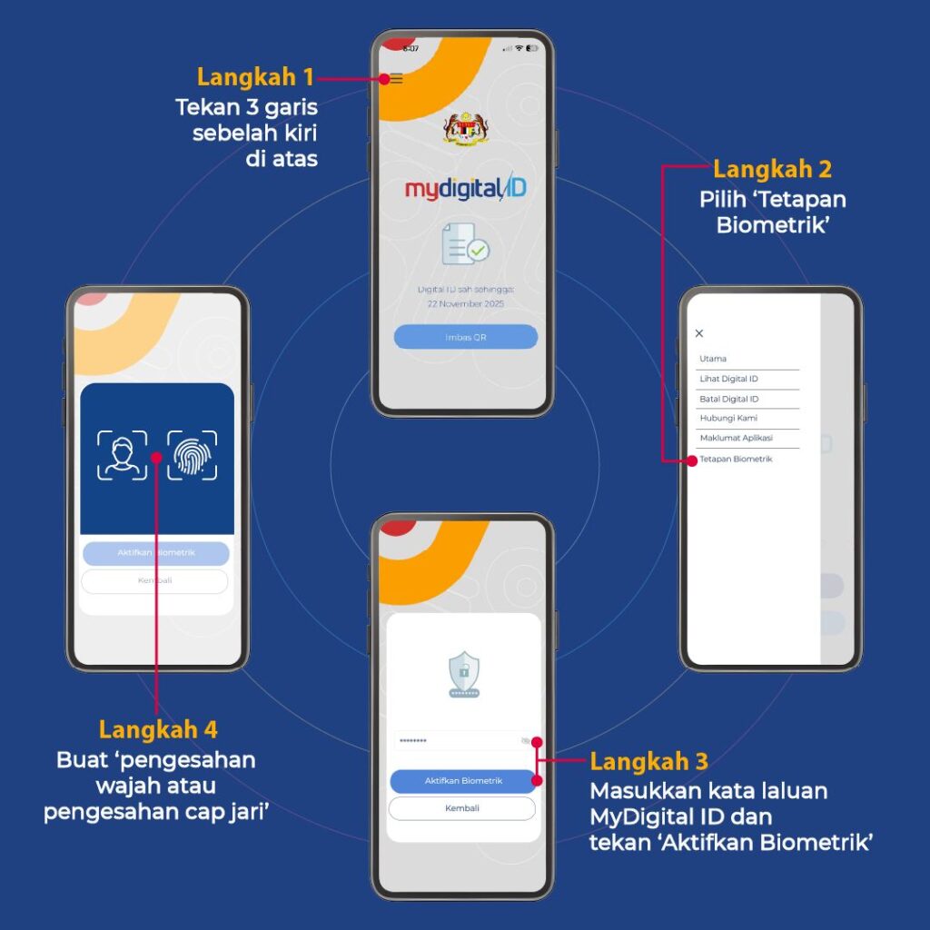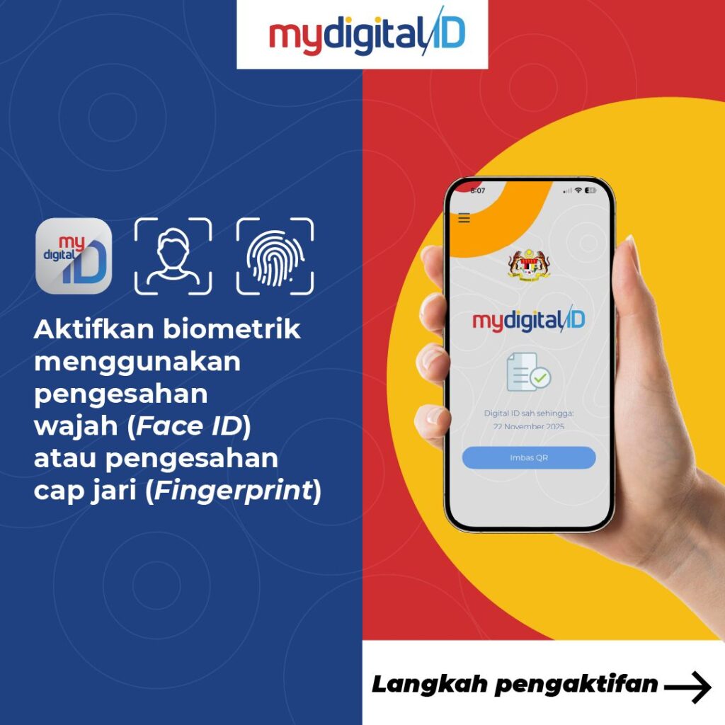 Sekarang MyDigital ID dah ada tetapan biometrik. Lepas ni lebih pantas dan lebih mudah korang nak log masuk aplikasi lain guna biometrik ni. Boleh aktifkan guna peranti android ataupun ios tau. Macam mana nak aktifkan? Korang boleh tengok langkah-langkah dekat gambar ni.